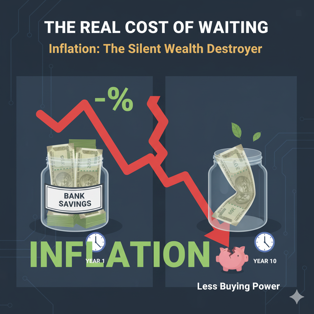 - Inflation is Real (and a Wealth Destroyer): Your savings lose purchasing power over time due to inflation. Keeping money idle in a bank account means you’re effectively losing money. The stock market offers a powerful avenue to make your money grow faster than inflation. Image Suggestion: A visual depicting money shrinking over time, perhaps a currency note diminishing in size.